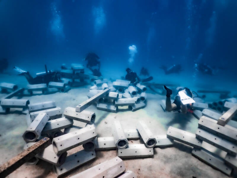 The first installation phase took place in Ao Mae Hat, where the team deployed MOSES units to create an artificial reef structure of 12 meters by 12 meters. The reef design was printed out and together with a professional diving team of Black Turtle Dive of 12 people the reef was installed in only 2 days! This effort was aimed to enhance marine biodiversity and provide new habitats for aquatic life in the area. The big structure is an interesting diving object, attracting tourists, which reduces the pressure of tourism on the natural reefs.